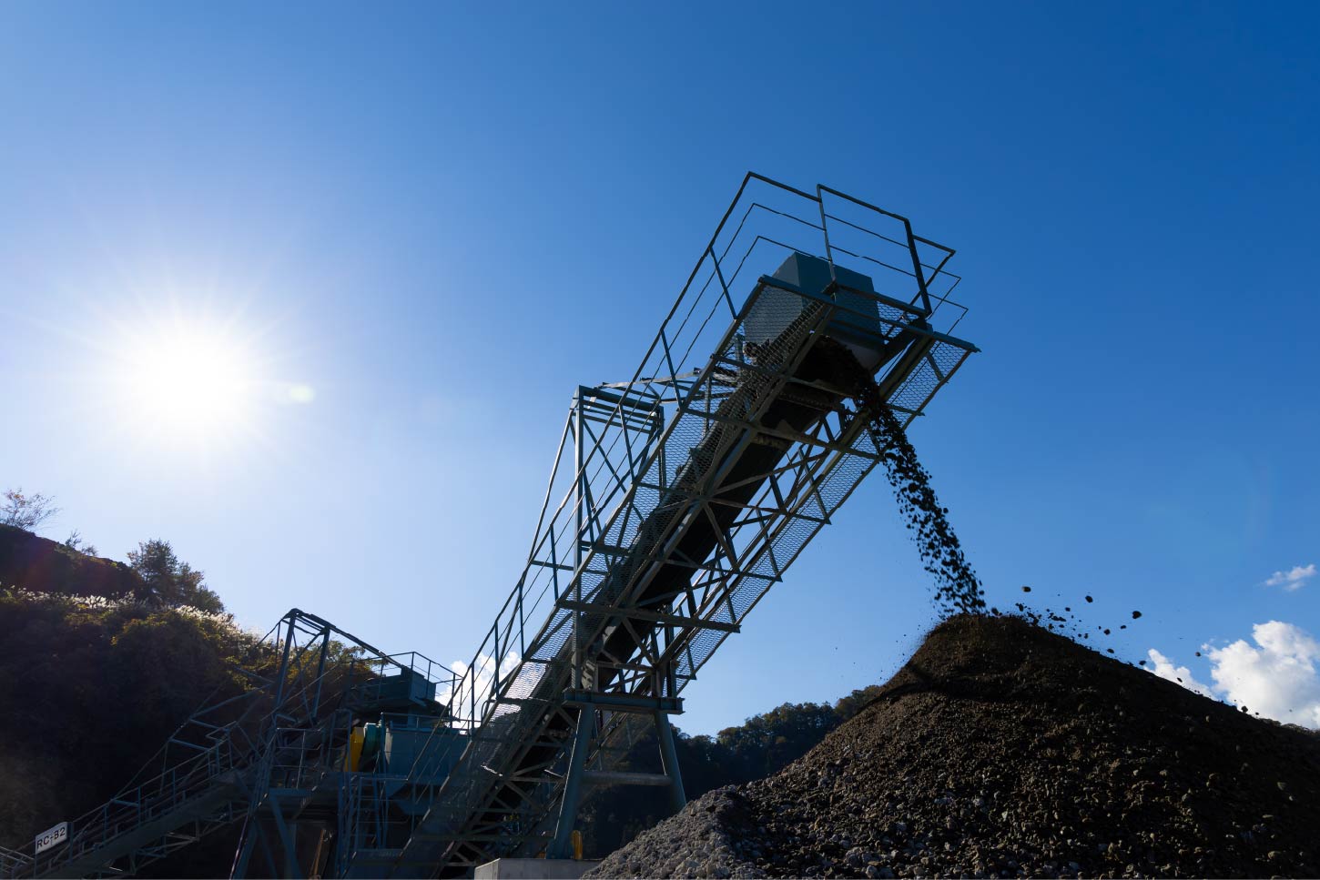 平成23年9月に産業廃棄物処理業の許可を取得し、リサイクル事業を開始。コンクリートガラ、コンクリート製品の廃材等を破砕加工して、高品質な再生砕石を生産しています。砕石資源の枯渇を抑制し、循環型社会の実現に貢献していきます。